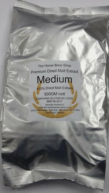 Super Malt Extract Medium Dried Premium Malt Extract 500g in a silver packaging.