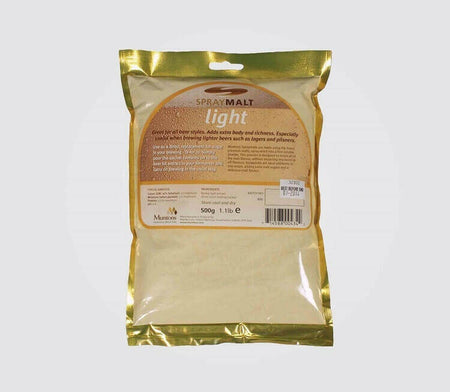 Muntons Extra Light Spraymalt 500g package, Dried Malt Extract for brewing American Style Beers and Light Lagers.