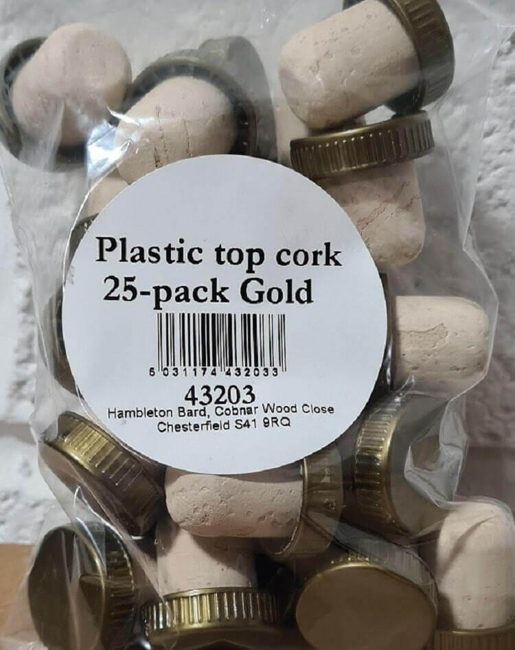 Gold Plastic Topped Corks can be inserted into wine bottles by hand, offering a simpler alternative when bottling your wine.
