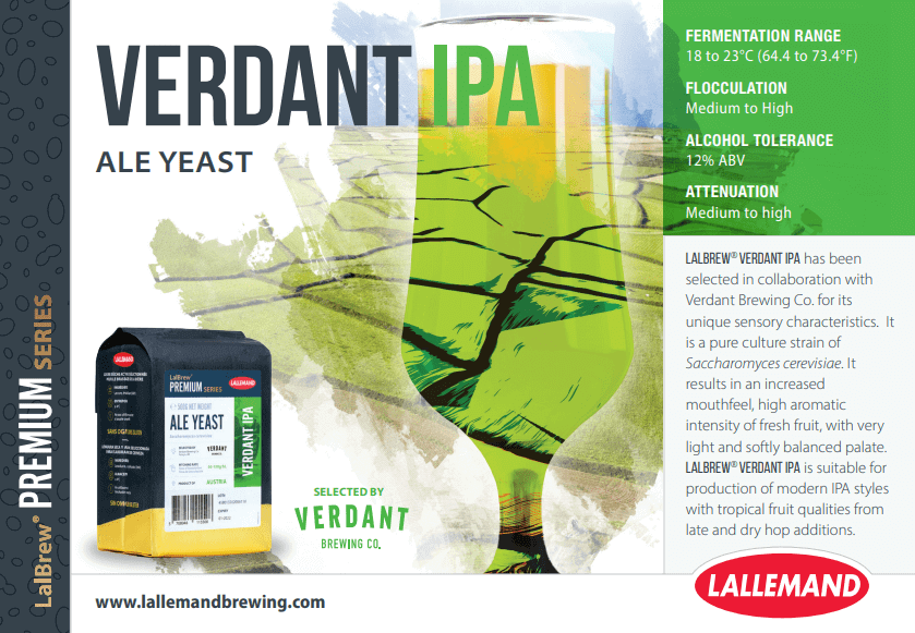 LalBrew Verdant IPA is a unique dried yeast that was developed in partnership with Verdant Brewing Co. (UK) to create a range of beers that showcase the best of hops and malts.
