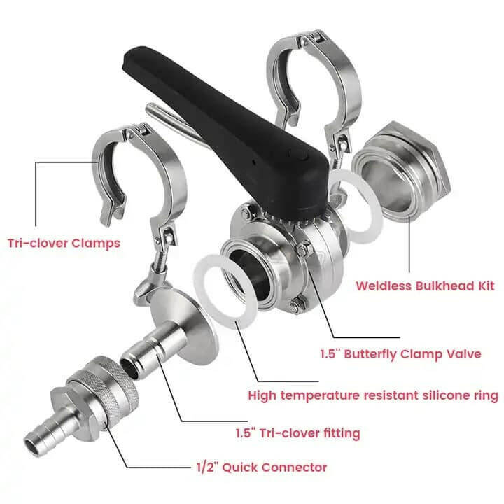 Tri Clamp Butterfly Clamp Valve Kit 1.5" Fittings